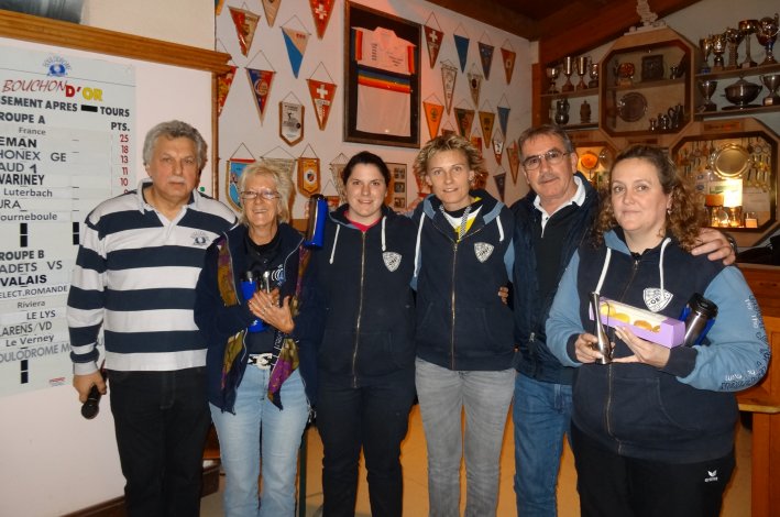 Des deux équipes des clubs propriétaires du boulodrome, celle composée de deux joueuses des NARCISSES, Carine LONGET et Josette PAPI et deux de CLARENS, Françoise SANDOZ et Josiane TROYON, a dû se contenter de la 8ème place et l'équipe de CLARENS avec Denise AUBERGER, Danielle BETTEMS, Susanne SCHNEIDER et Jailma CHOLLETa été classée 6ème.
